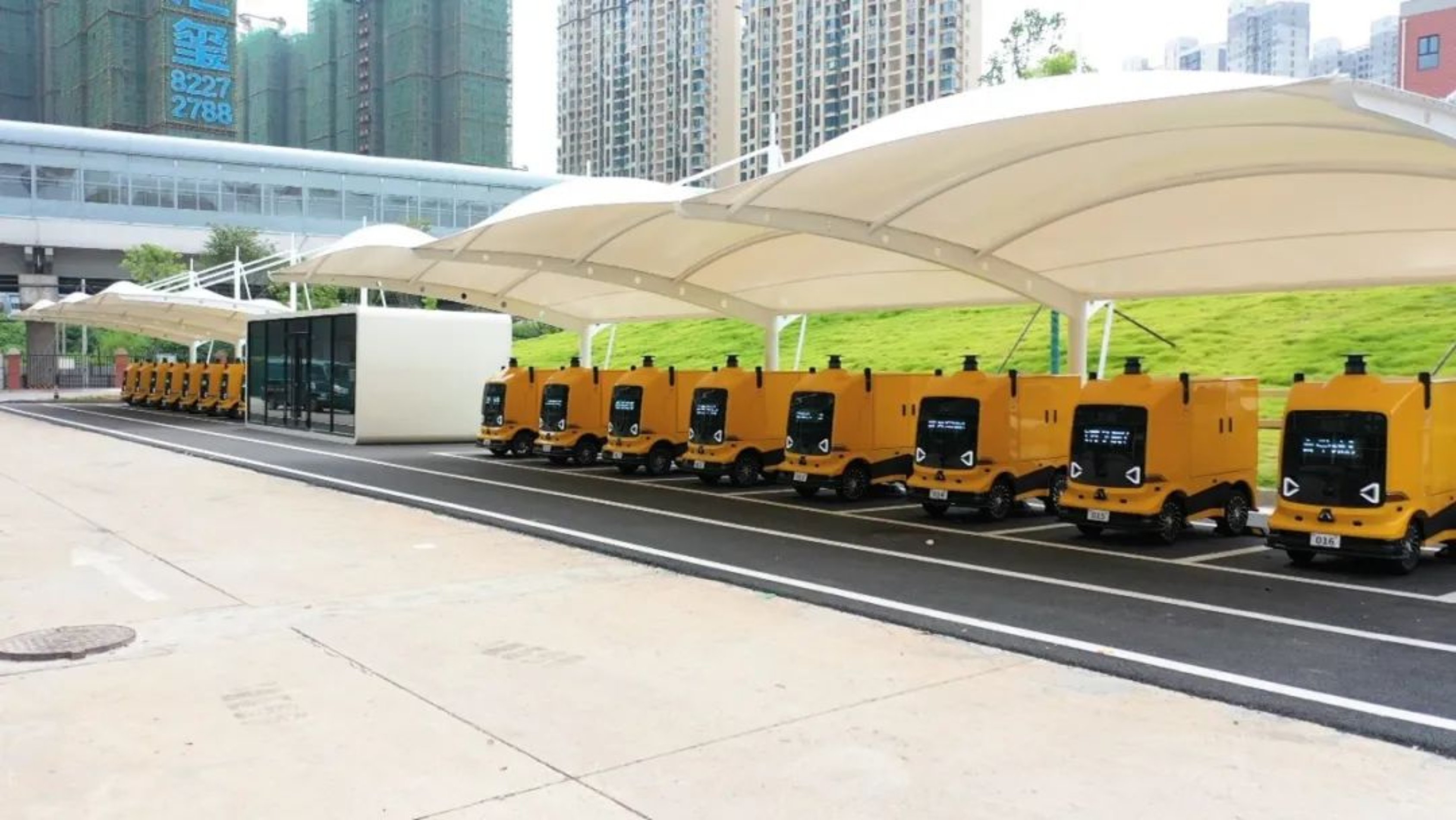 近日,一批科技感十足的无人车穿梭在校园里,吸引师生员工纷纷驻足。它们从后勤服务楼出发,时而努力爬坡,时而撒欢加速,遇到行人车辆则低调避让,抵达宿舍楼后静待学员开箱取货。