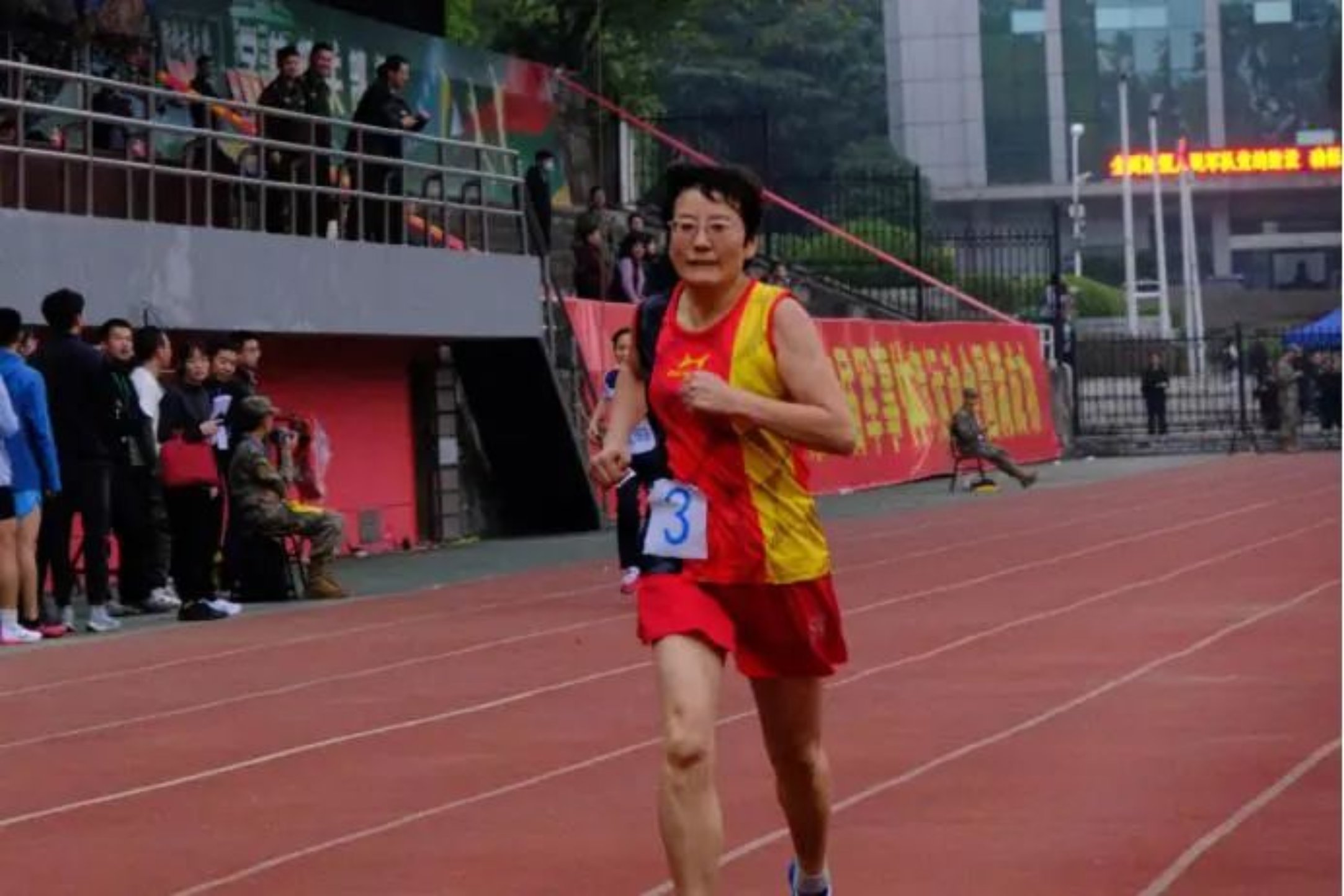 “12分09!恭喜任老师又打破记录了!”女子青年组3000m的比赛刚结束,一众学员已纷纷上前祝贺。“今年我选择更有挑战的青年组,就是为打破自己的记录!”来自军政基础教育学院的任会芬,按年龄本应参加“中年组”比赛,却选择与年轻十几岁的青年选手同场竞技,并最终勇夺冠军,打破记录!她身上闪烁着“永远青春”的精神,平日训练,她与本科学员们共同飞驰于跑道上;讲课中,她时不时蹦出几个“时髦”的网络热词;生活里,她与学员们如密友般言笑谈心,并无代沟。“心若年轻,岁月不老”,从三尺讲台到百米跑道,她以青春心态,换来无数鲜花与掌声!