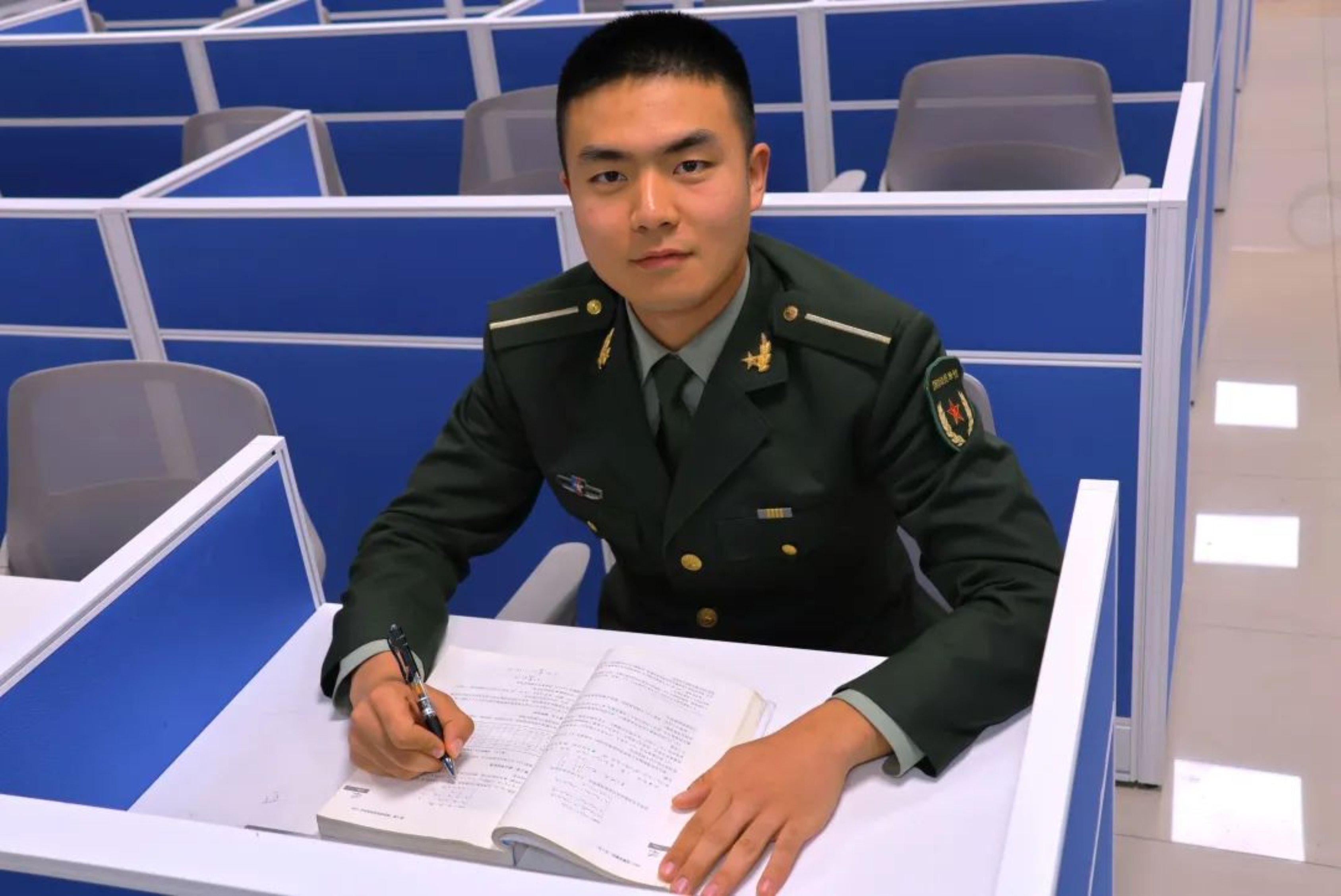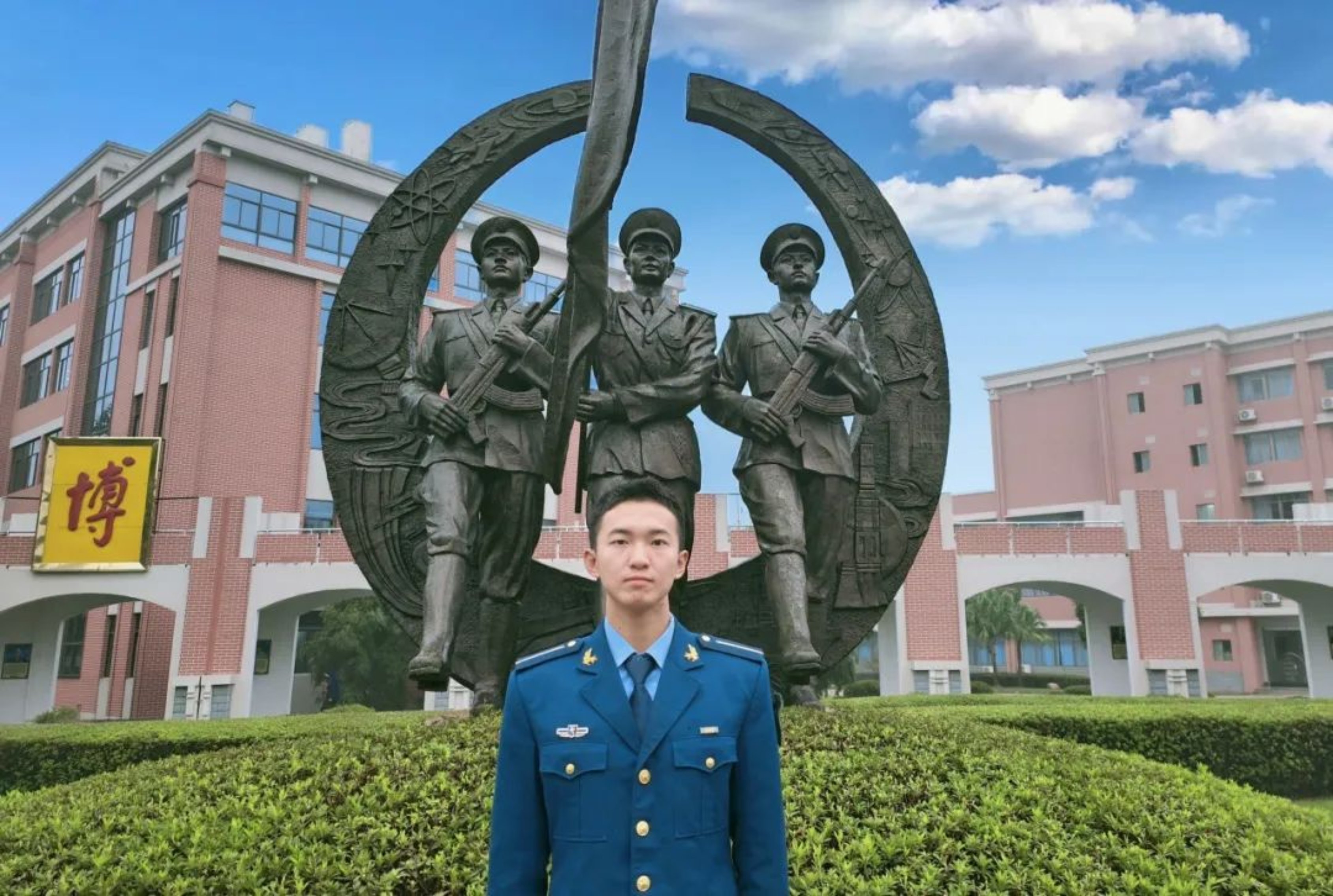 我曾是一名地方医学生,怀着一腔热血,放下柳叶刀,成为北部战区空军的一名战士。如今在科大的校园里,我牢记“厚德博学 强军兴国”的校训,以科技为翼,向蔚蓝深处翱翔。今年,我以专业排名第一的成绩获得指挥类学员的保研资格,以此向人民空军致敬。