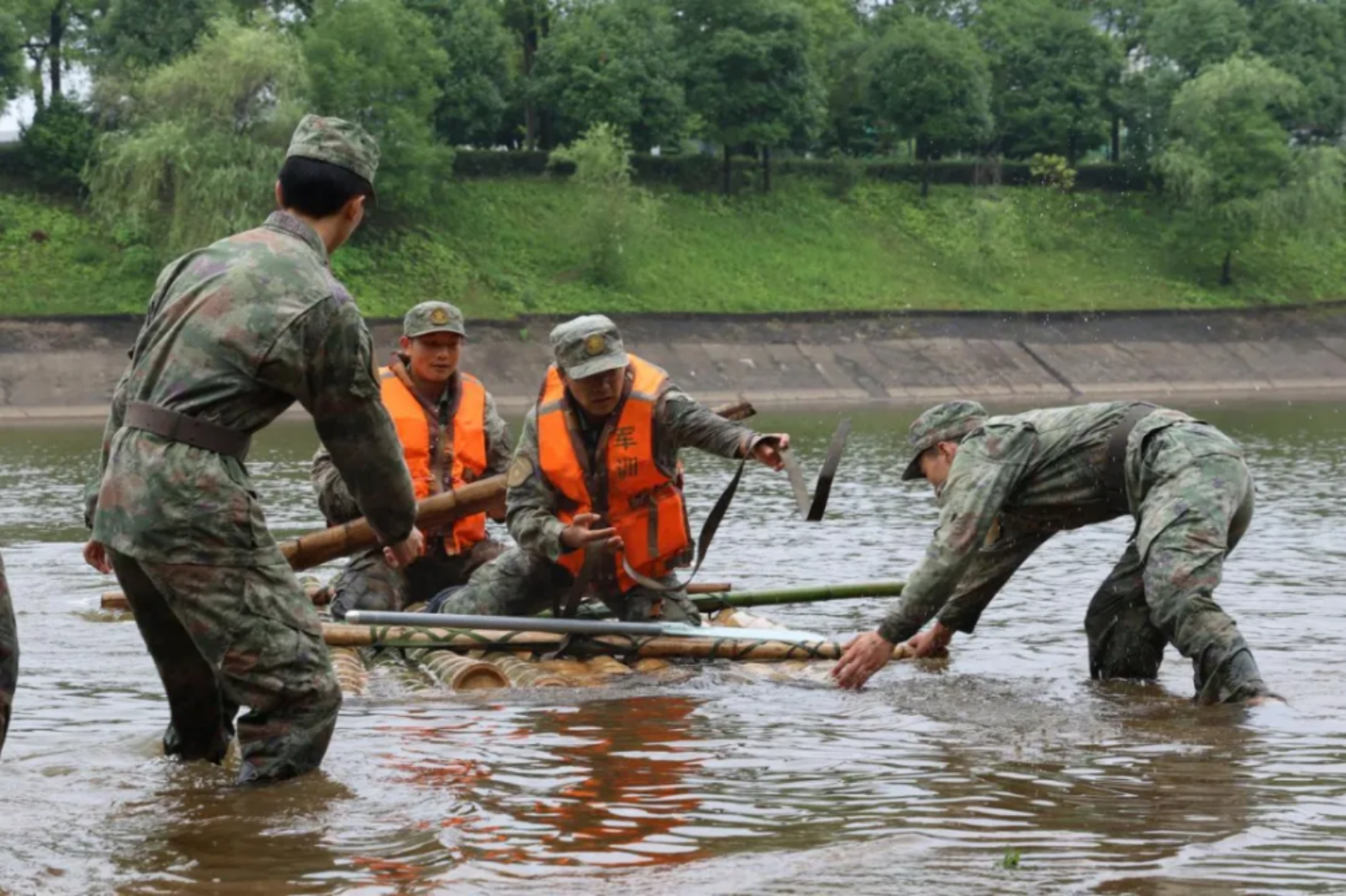 湘江的风吹过迷彩肩。