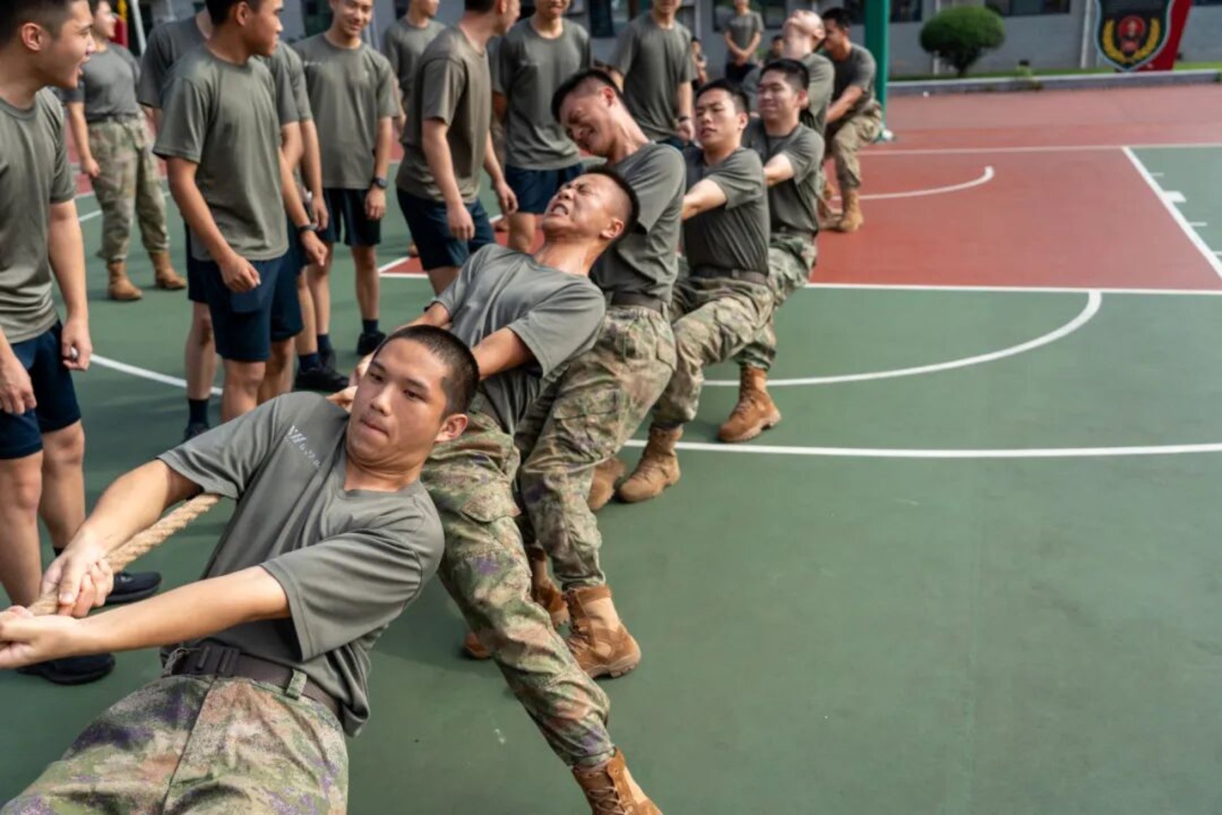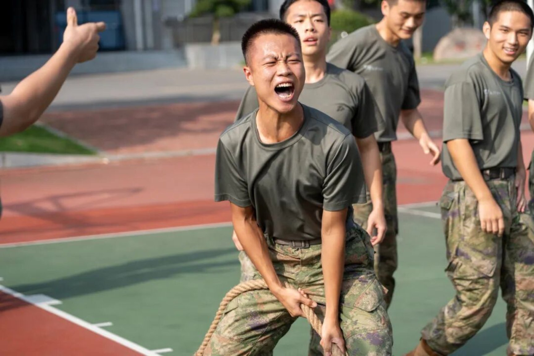 中秋午后,暖阳洒满训练场,军政基础教育学院某学员队拔河赛正式拉开帷幕。阳光镀亮绳索,队员们躬身屈膝、紧握绳柄,臂膀绷出有力线条;赛场边助威声此起彼伏,与金色阳光交织成热烈图景。这场赛事,把中秋的团圆意揉进集体拼搏,让节日的温情,在阳光下化作并肩向前的热血动能。