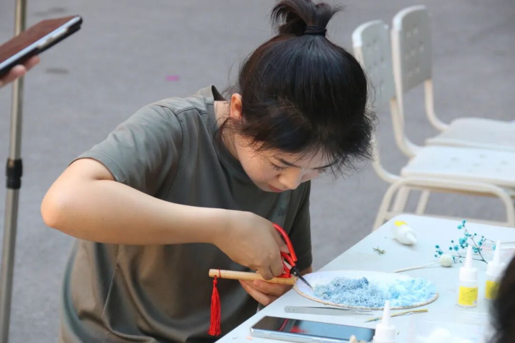 中秋与“穿越”也很适配。气象海洋学院推出“朝代体验馆”“胸怀家国,月色无疆”国庆中秋联欢晚会等多项特色活动,为学员们奉上了一堂生动的历史文化实践课与一场精彩的视听大餐。“朝代体验馆”以“一朝一物,一眼千年”为主题,沿历史脉络设置了春秋遗韵、汉韵剪纸等10项特色体验项目。学员们穿梭于各朝展区,在沉浸式互动与亲手实践中与华夏文明瑰宝深度对话。在通关打卡的过程中,学员们不仅收获了精美的中秋小礼品,更于韶光流转间感受不同朝代的文明脉搏。