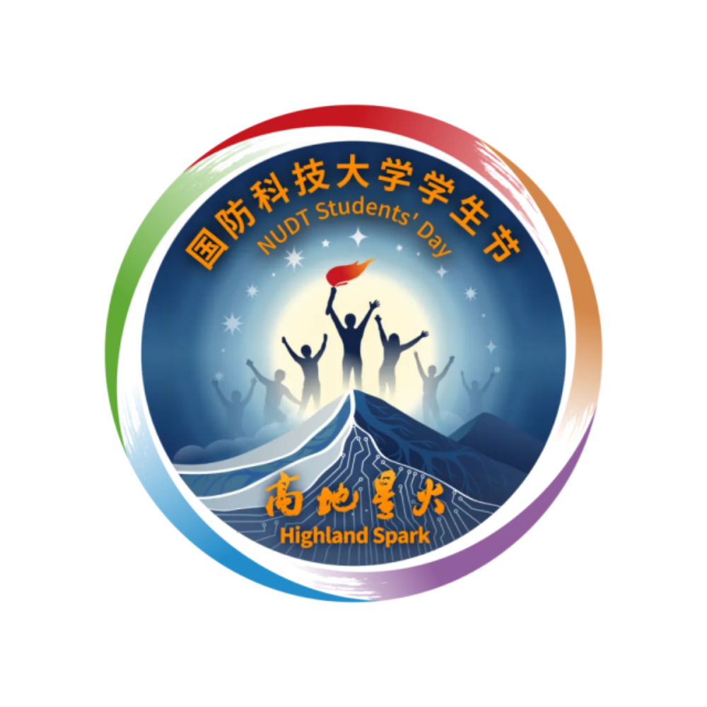 徽标以“高地星火”为题,蕴含“学生中心、学员主体”育人理念,喻意“高地之上、每个青春都在闪光”。徽标由学生群像、高地、太阳、星空、五色文化环等元素组成。学生群像以攀登者形象,整体位高地之上,体现学生勇攀高峰、团结协作的奋进姿态;学生手持火炬与太阳光芒、穹顶星空交相辉映,体现学生拥抱梦想、探索未来的昂扬青春。高地正面的芯片纹理代表科技创新,两侧的根脉纹理代表滋养成长,分别体现学校“两个高地”对学员培养的支撑托举。整个徽标由学校五色文化(政治红、军事绿、科技蓝、文化紫、幸福橙)渐变环绕,体现学校高地文化育人功能。