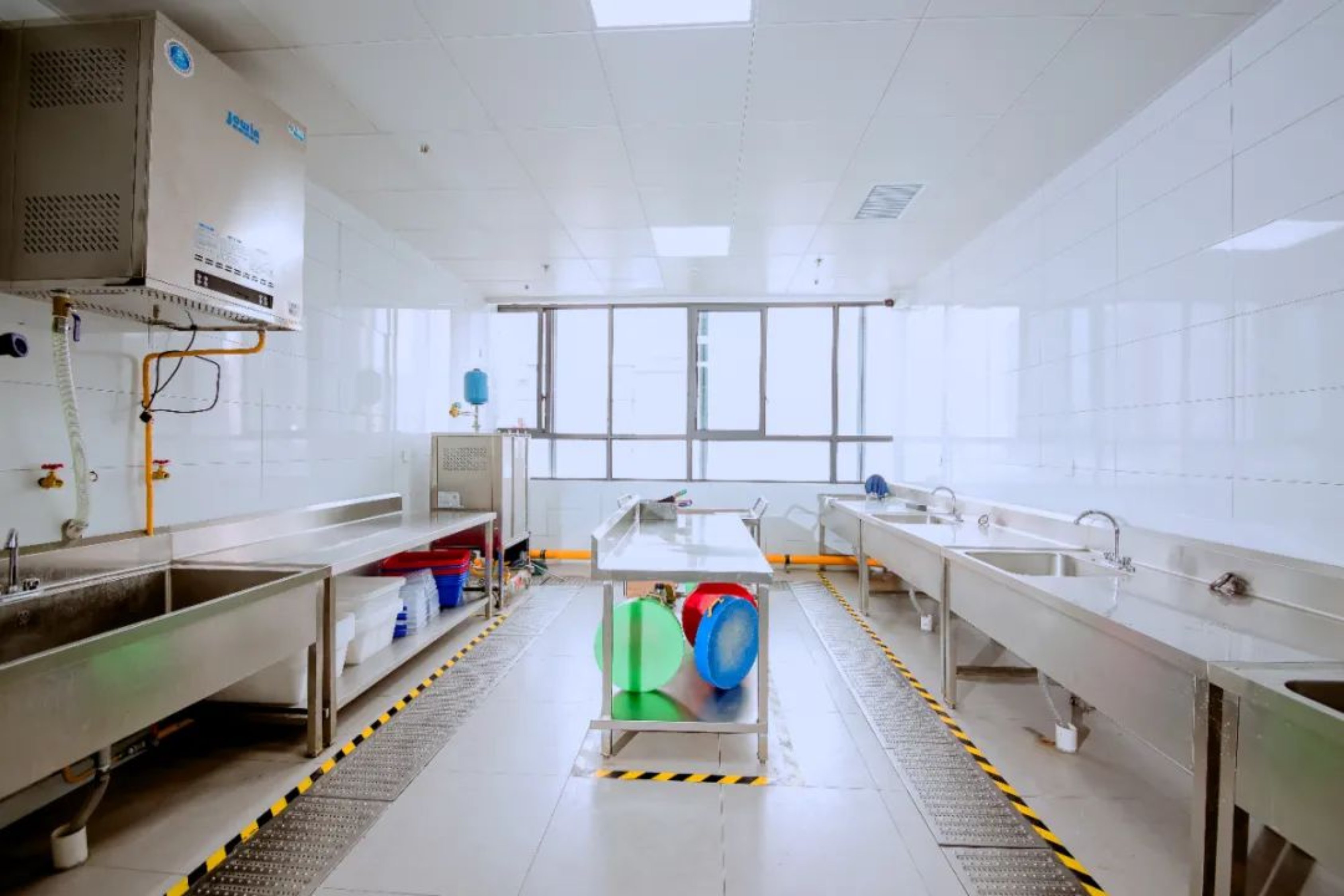 食堂一层,为菜品加工储存区“物联网+明厨亮灶”通过高清视频展示每个操作环节透明化的厨房环境让管理无感安全有感