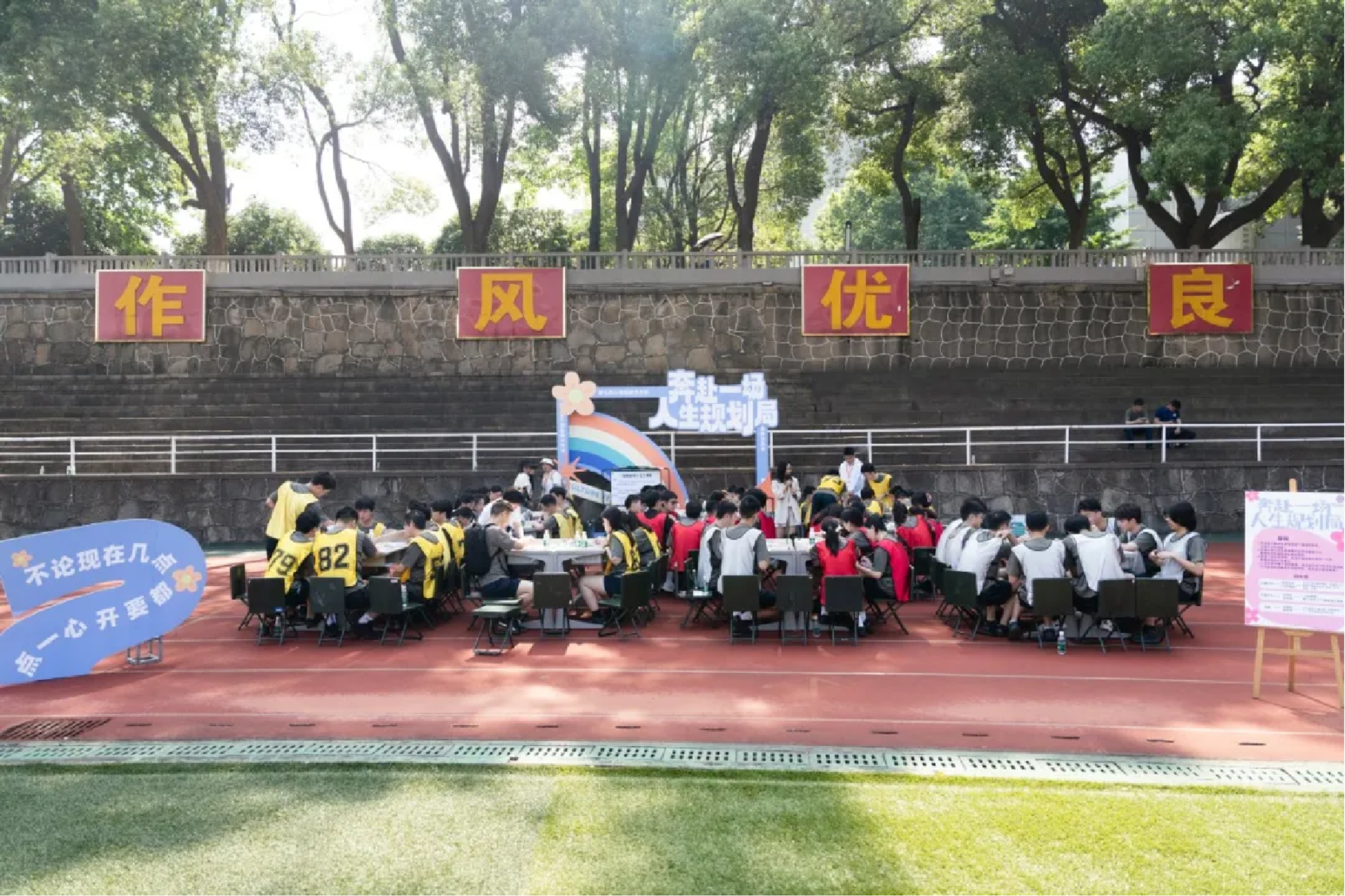 一号院开幕式及嘉年华活动在田径场组织,全体人员在心理老师的带领下热情舞动,颠起大型波浪球。欢声笑语充满着整个操场,拉近了彼此心灵的距离。