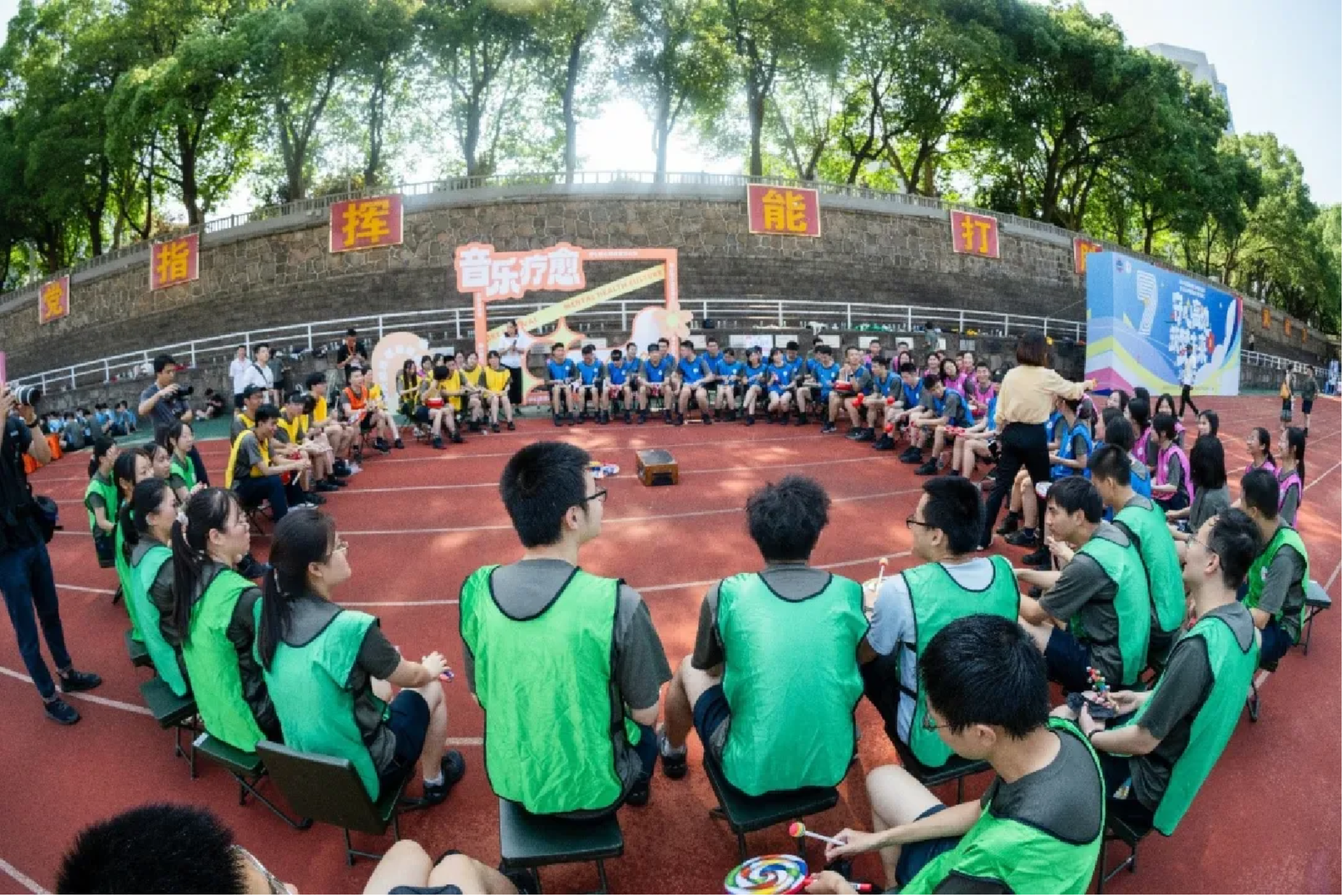 同时进行的还有“乐之疗愈”,参与者在音乐治疗师的带领下,通过各种专门设计的音乐行为,用心感受音乐,达到舒缓情绪压力、增进身心健康的目的。