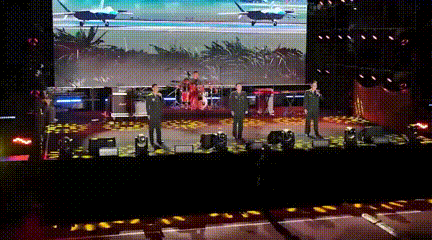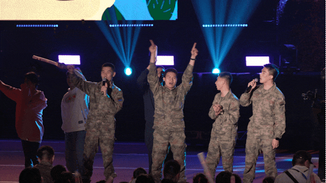 火烈鸟乐队在阵阵欢呼声中登上了舞台,歌曲《向阳花》《公路之歌》展现年轻人朝气蓬勃,愿我们在强军新征程上永远奔跑,永远热泪盈眶。