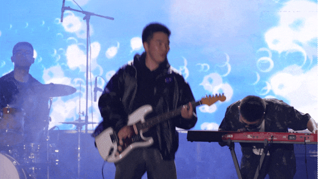 在莹莹灯光之下,流行色乐队登上了舞台,《开门见山》《都选C》《我们的时光》三首歌曲连唱,引爆了全场。“为梦想灼伤了自己,也不要平庸地喘息......” 用音乐诠释他们滚烫不已的热情,用歌声燃烧他们奋进不停的青春。