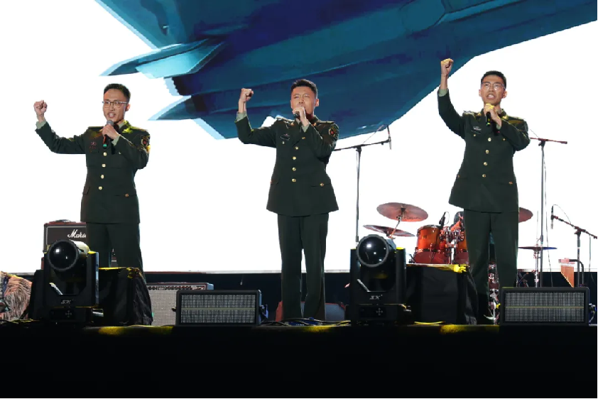 跨线桥乐队用《火车日记》向我们表达“为军向战”的青春最强音,用《光年之外的天空》带给我们穿越“维度”、突破“象限”的力量;再用一曲歌声激昂、旋律铿锵的《强军战歌》唱出了科大人矢志强军的决心。