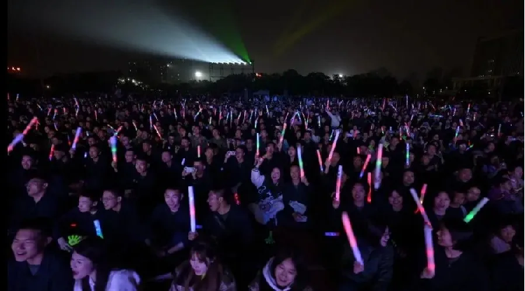 火色的热情冲向九霄,观众们不断挥舞着手中的荧光棒,将眼中的星辰投向舞台。