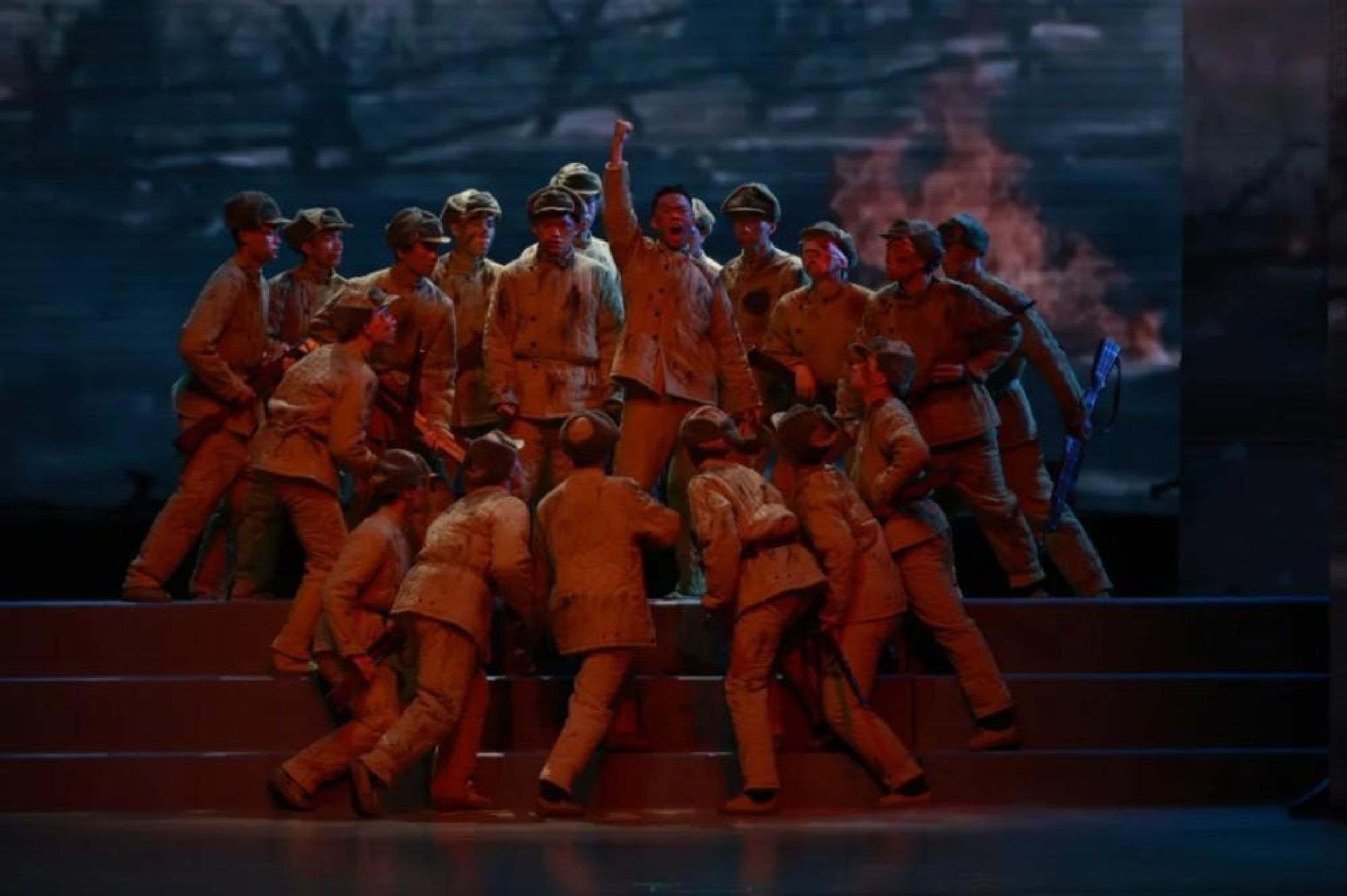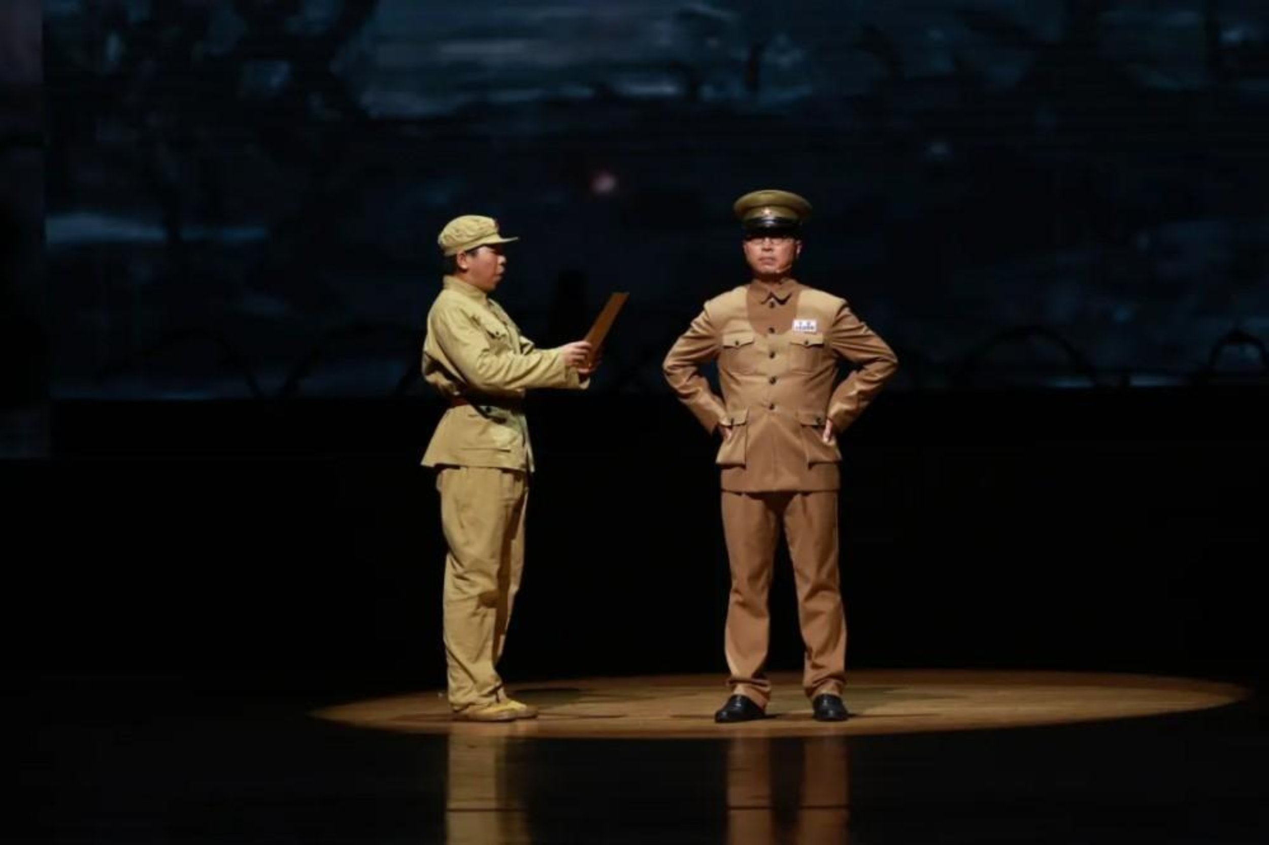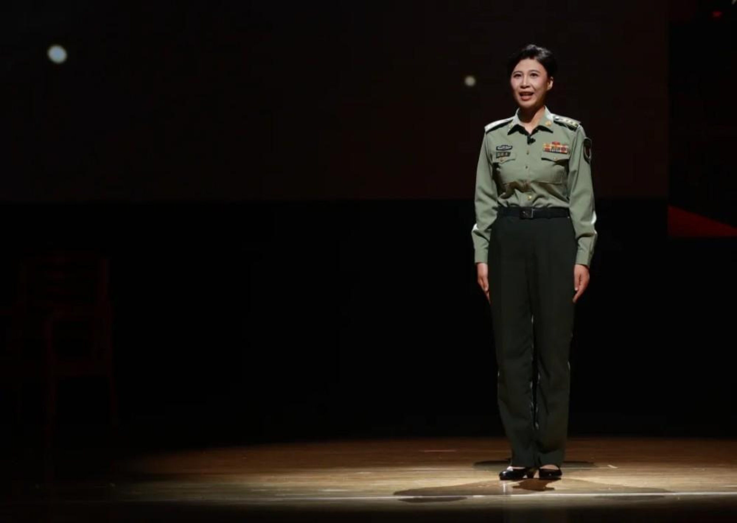 “人在——阵——地——在!”一声嘶吼划破舞台的宁静,瞬间将全场气氛推向高潮。聚光灯下,姜劲纲身着沾满“血污”的军装,屹立在“战壕”中,挺拔的身影仿佛与历史重叠。谁也想不到,这位在舞台上爆发出惊人力量的学员演员,几天前还因急性阑尾炎躺在病床上。尽管编导组一直建议他住院休息,但是他仍然选择“人在阵地在”。当大幕拉开、当灯光亮起,那一刻,他全然忘却了身体的不适,将自己完全代入角色。