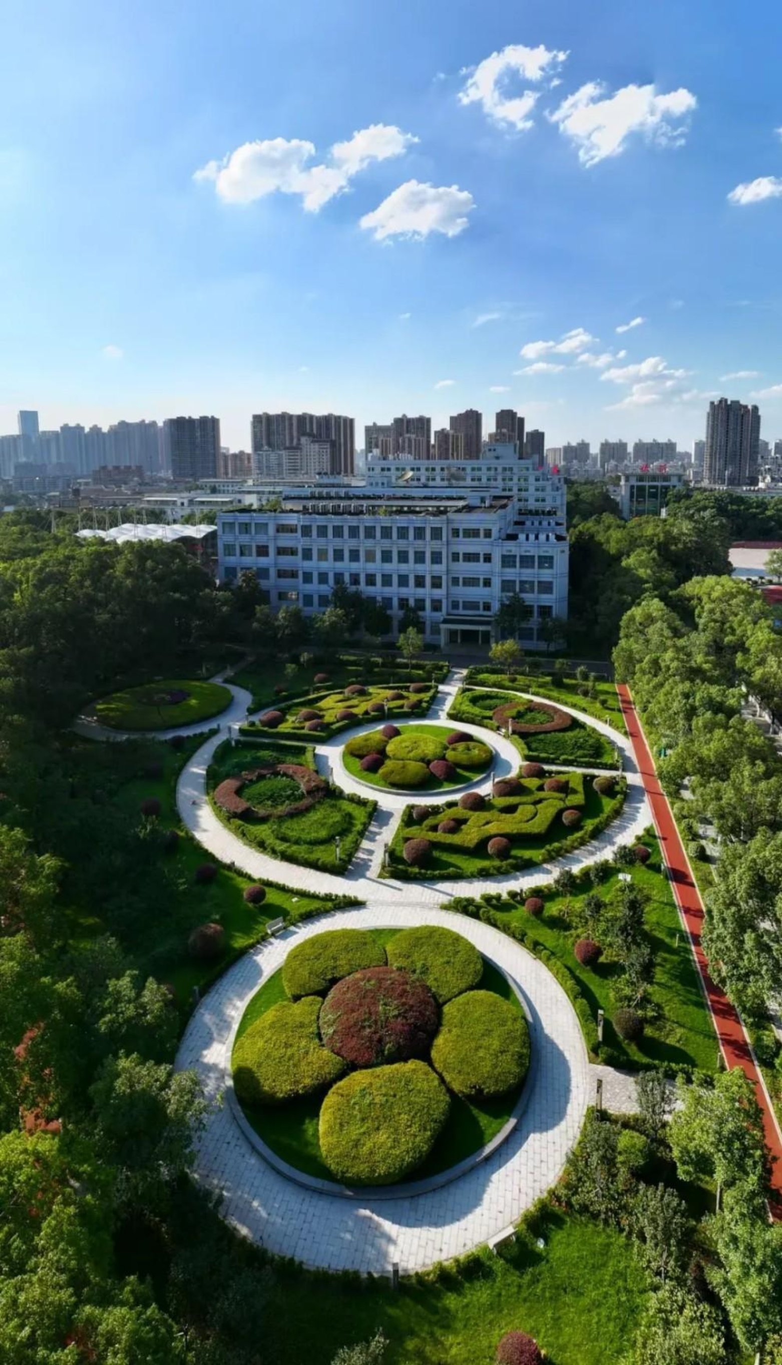 101教学楼前,圆形花坛群造型别致,或如绽放的花簇,或似精巧的几何,形状美轮美奂。在这充满生机的景致里,学子们于知识的沃土汲取养分,以积极向上的姿态奔赴学习之旅。