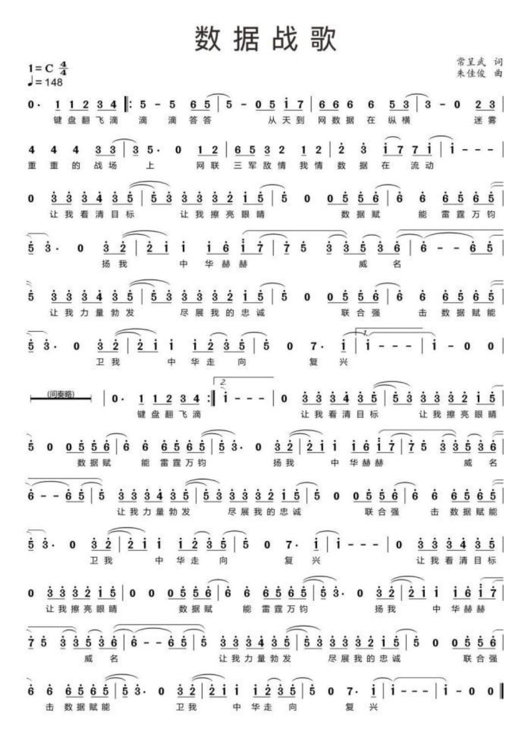 《数据战歌》为“数据组歌”之一,歌曲以鲜明的意象和磅礴的气势,描绘了一幅现代信息化战争的壮阔图景:将无形的数据战场具象化,取代了传统战场的硝烟炮火,勾勒出信息流跨域传输、无处不在的作战空间。揭示了在迷...