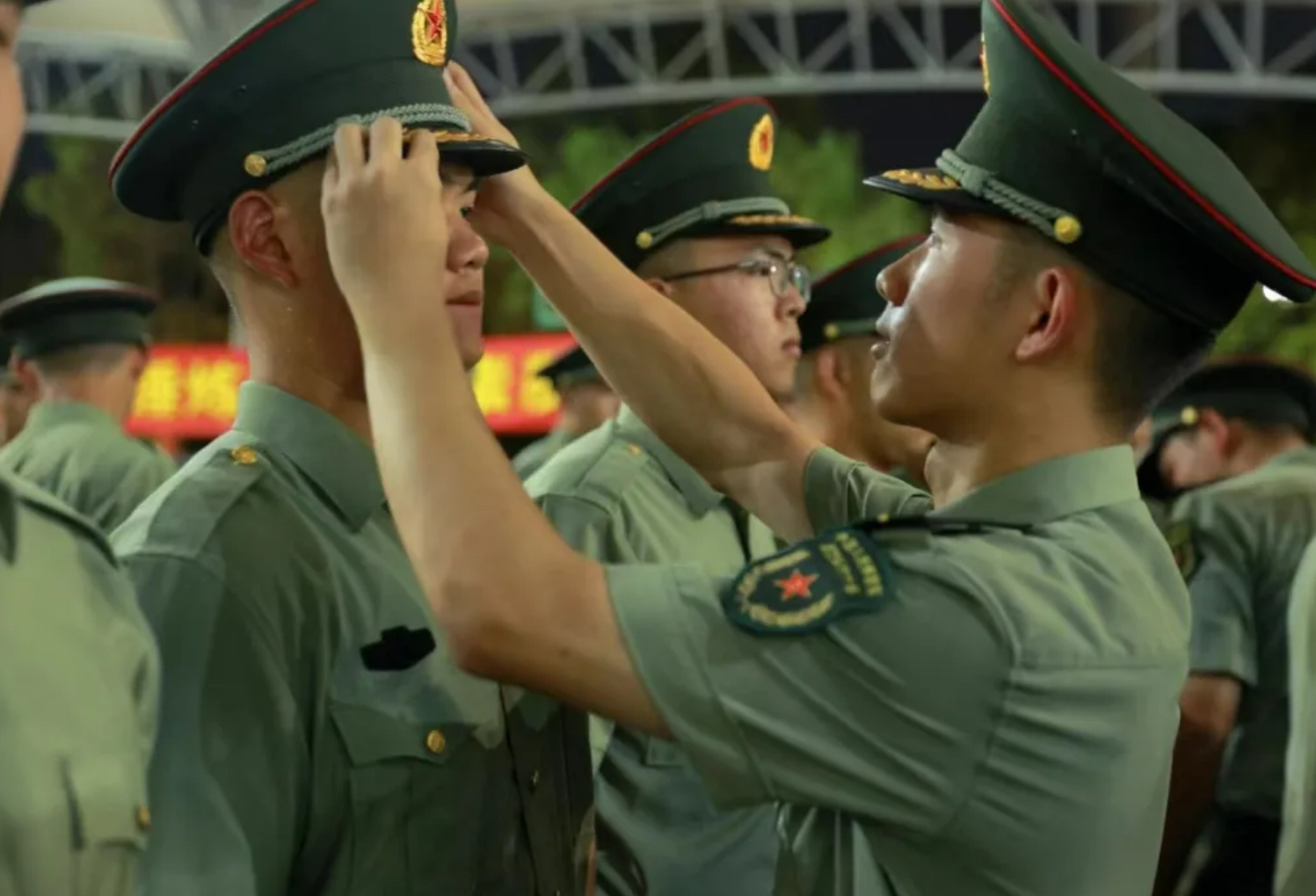 站在军容镜前 崭新的一道杠赫然在肩 郑重授衔 铿锵誓言 难以褪去喜悦和新鲜